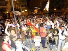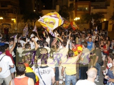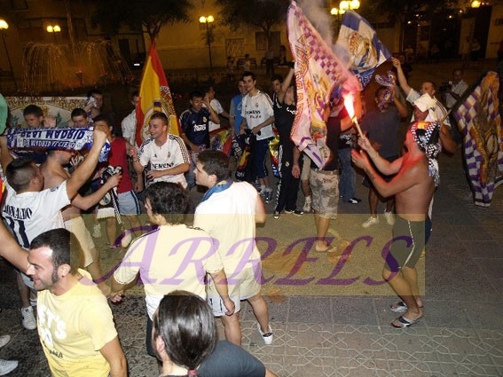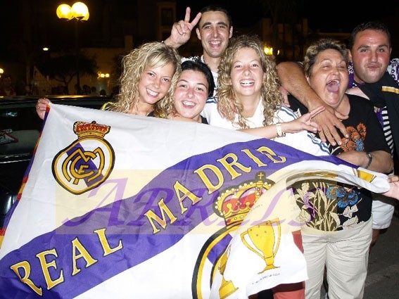 Los aficionados del Real Madrid festejan la conquista de la liga