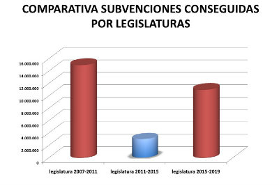 El equipo de gobierno de mayoría socialista ha superado en 7 millones de euros las subvenciones conseguidas de otras administraciones respecto a la pasada legislatura gestionada por el Partido Popular, en la que los populares recibieron menos de 3'5 millones, mientras que los socialistas han conseguido más de 10 millones de euros en los tres primeros años de mandato en su apuesta por mejorar la ciudad e incrementar la calidad de vida de la ciudadanía con la materialización de proyectos necesarios.