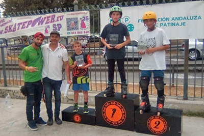 Miembros del club de patinaje Ondawheelz se desplazaron el pasado sábado 15 de septiembre  hasta Sevilla para participar en el campeonato autonómico Roller Freestyle andaluz. En esta prueba el joven Jorge Maneu, de diez años, consiguió llegar al podio obteniendo una merecida 3º plaza en la categoría de menores de 14 años, junto al madrileño Manuel Guijuelos y al andaluz Antonio Baños, que obtubo la 1º plaza.