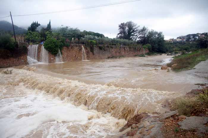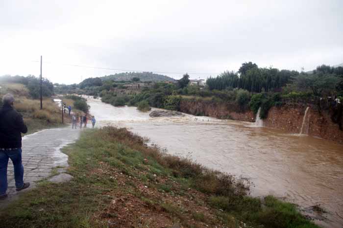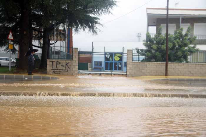 En zonas rurales como la Partida Fuente de Lloscos los patios de las casetas han quedado inundados y en la zona del cementerio el agua corría con velocidad.