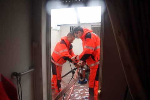 La Policía Local y Bomberos Voluntarios han tenido que actuar en diferentes puntos de la localidad: en la avenida Sierra Espadà han tenido que controlar el agua que llegaba desde la Rasa de Sala y que ha causado inundaciones en los bajos de esta zona, además han tenido que limpiar de restos de cañas y plantas la salida de dicho barranco; en el barrio del Recinto los bomberos han tenido que achicar agua del patio vecinal de un primer piso que estaba inundado porque aparentemente la cañería estaba embozada, también cerca de la calle Pintor Oliet han tenido que sacar el agua que estaba en algunos almacenes y han tenido que asegurar una fachada que se estaba desprendiendo.
