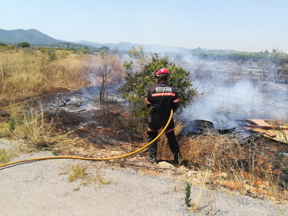 Los bomberos trabajan en la extinción de un incendio entre el Camí de la Volta y el Camí de Betxí.