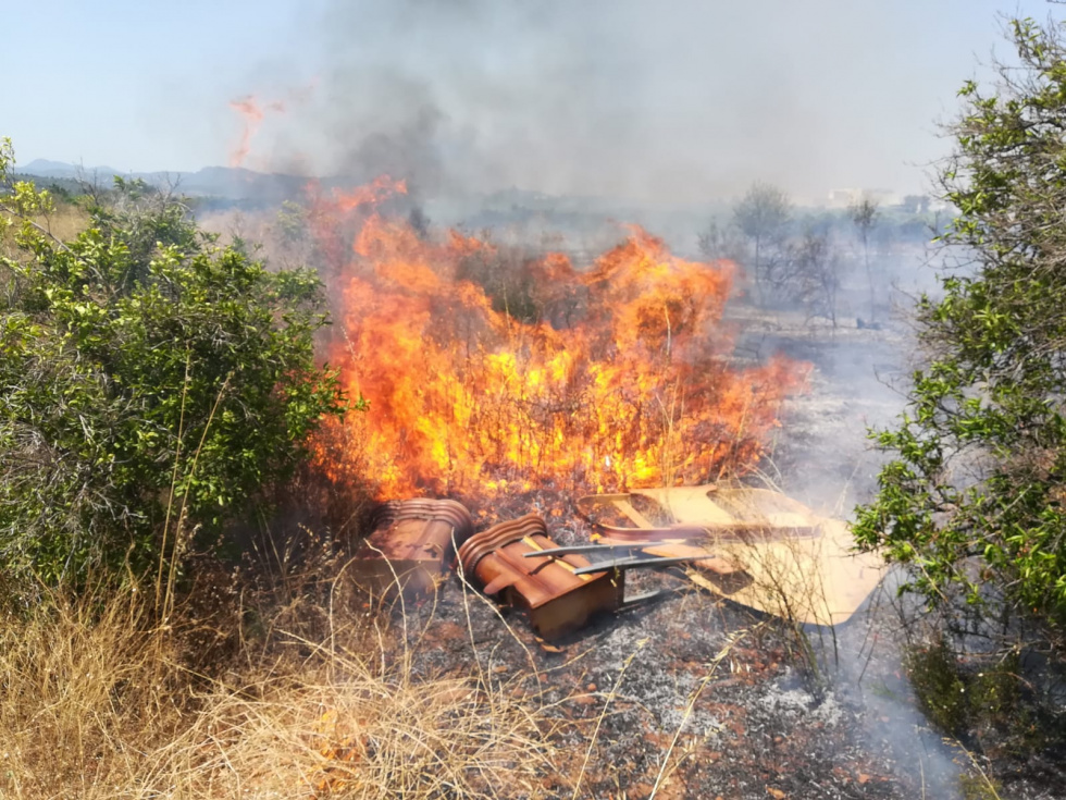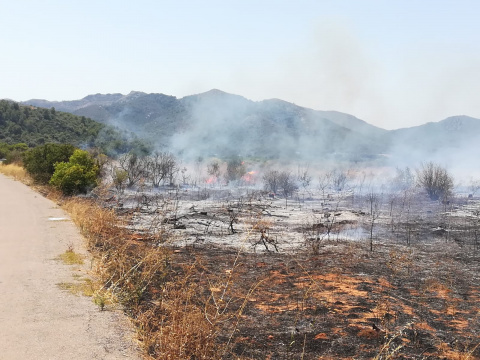 [Img #35858]El fuego se ha originado al mediodía y ha calcinado alrededor de 700 metros cuadrados de masa forestal de matorral, según las primeras estimaciones a pie de campo de los bomberos.