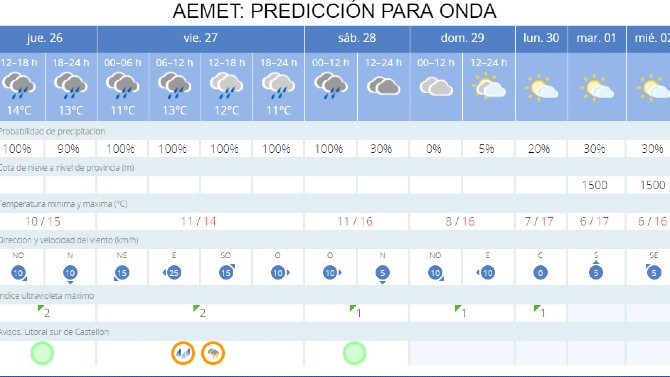 La alerta se extiende desde la tarde del jueves 26 y durante todo el viernes 27