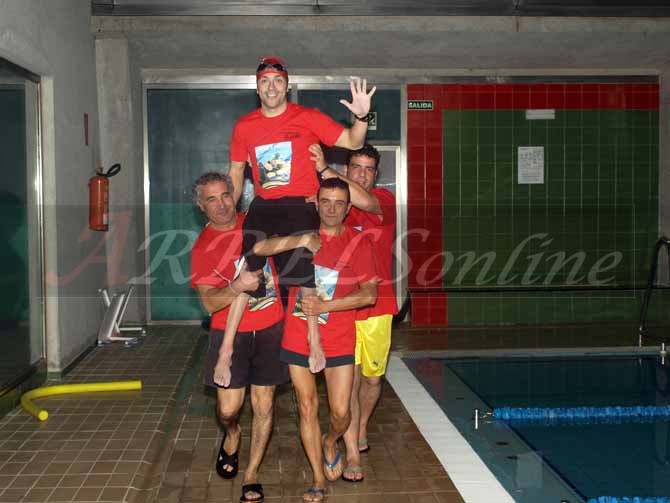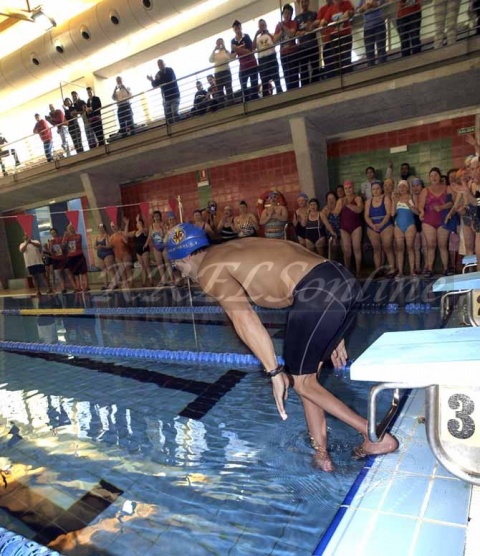 Desde las 9.00 hasta las 19.00 horas, Pepe Ramos nadó 26.000 metros, uno por cada persona empadronada en Onda, una dura prueba, que lejos de ser un ‘mal trago’, se convirtió en un ‘brindis’ multitudinario y participativo, ya que fueron muchas personas e integrantes de clubes, asociaciones y entidades por las que ha trabajado Pepe Ramos, las que quisieron nadar a su lado durante unos metros.
