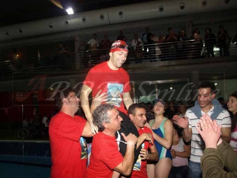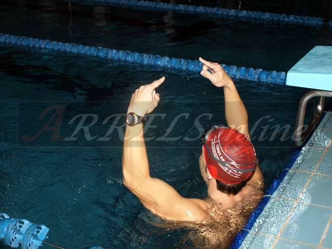 [Img #44121]Una exposición con todas las medallas y los recortes de prensa que han plasmado en papel su dorada trayectoria de 12 años, dio la bienvenida en la piscina cubierta a los numerosos ondenses que quisieron sumarse al reto que el campeón de Artesa se había marcado para poner el broche de oro a su carrera deportiva.