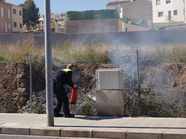 [Img #10939]Otro conato de incendio en Onda, por la zona sudoeste de la población. En esta ocasión ha sido en la calle Balmés, en un solar ubicado al lado del colegio María Rosa Molas y de un bloque de viviendas, que no han sido dañadas por el fuego, que al final solo ha afectado a unos 20 metros cuadrados.