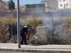 Las causas, al igual que en el resto de ocasiones, se desconocen, pero la frecuencia con la que se suceden los incendios invita a pensar en algún pirómano. La Policía ha acudido  rápidamente al lugar de los hechos, poco después de las cuatro de la tarde. Un agente, con extintor en mano, ha apagado las llamas que se extendían por un bloque de enganche de la luz.  Después han llegado los bomberos, que se han puesto a extinguir el fuego en este terreno repleto de maleza.