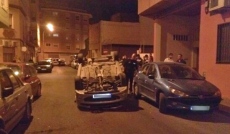 Un coche vuelca en la calle Doctor Fleming tras chocar contra varios vehículos estacionados