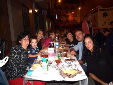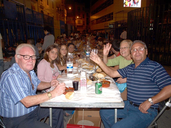 Mientras tanto, el centro se iba convirtiendo en un hervidero de gente. Calle de San Miguel, el Pla, el Raval... prácticamente todos los rincones fueron ocupados por mesas y sillas, y sentados, miles de personas, que después de cenar pudieron seguir la fiesta con una orquesta en la plaza de España.