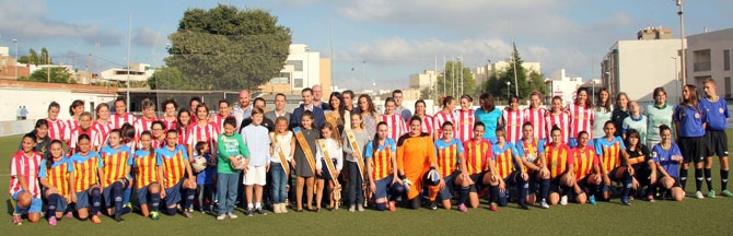 Antes del inicio del partido, que ha finalizado con empate a 5 goles, Patricia Campos ha leído un manifiesto contra la desigualdad y la que ayer fue nombrada Reina de la Fira 2015, Cristina Llorens, ha realizado el saque de honor.