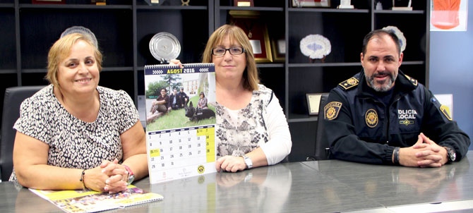 La concejala de la Policía Local del Ayuntamiento de Onda, Mari Carmen Aguilella, ha presentado esta mañana el calendario solidario de 2016 que ha realizado la Policía Local y que protagonizan los usuarios del Centro Ocupacional El Molí.