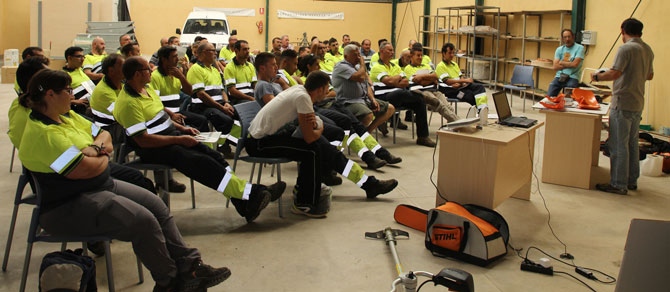 Se ha tratado de una jornada intensiva, la primera parte en el almacén, donde un técnico les ha impartido la teoría. Esa misma persona ha realizado después una demostración práctica de trabajos forestales en un pinar municipal de Tales.