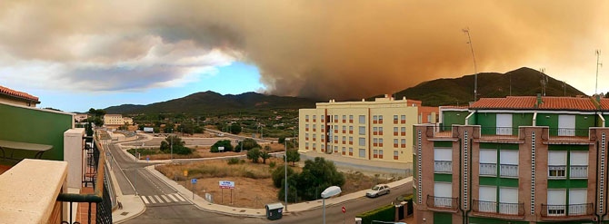 Pero en la montaña la situación era peor. El fuego avanzaba sin control, alimentado por las altas temperaturas y por un viento que giraba cada vez en una dirección, lo que al final de la tarde hizo necesaria la intervención de más de 300 efectivos y unos 27 medios aéreos, entre ellos algunos de las provincias de Aragón y de Cataluña, según informó poco después de las 19.00 horas el gabinete de comunicación de emergencias y seguridad de la Comunitat Valenciana.