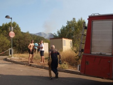 Los vecinos de la urbanización de la falda del Montí de Tales están pendientes en todo momento de la evolución del incendio.