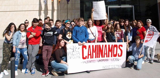 Un grupo de estudiantes se concentra en el Pla.