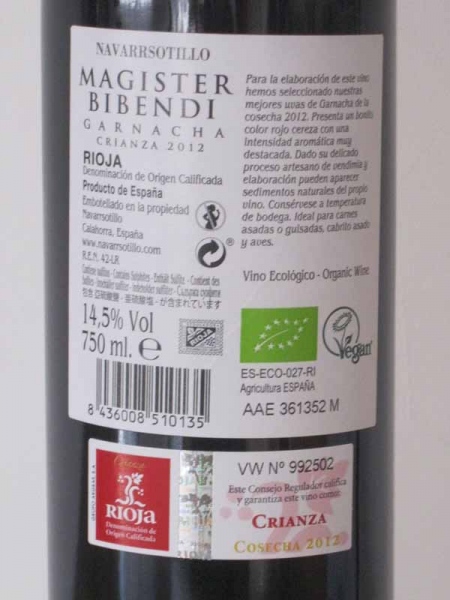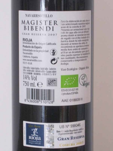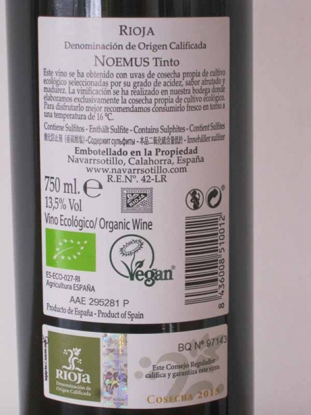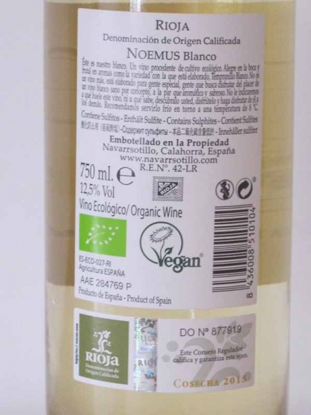 "El sello de ‘vino ecológico’ con el que se diferencia a estas botellas (en la imagen) permite al consumidor estar seguro de que el producto final y todo el proceso llevado a cabo anteriormente está libre de contaminación, es decir, se producen bajo los criterios bio establecidos por la Unión Europea."