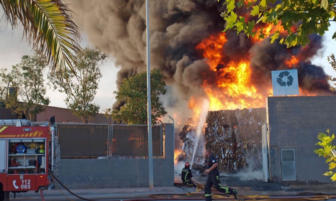 Los bomberos actúan de nuevo en la empresa de reciclaje de Onda