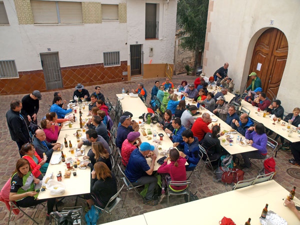 Al llegar a la pedanía de Veo, tras recorrer los bellos parajes montañosos de la Sierra Espadán, se ha hecho una parada para almorzar en la plaza de la Iglesia, donde han coincidido con el paso de algunos corredores de la Trail de Alcudia de Veo. Después se ha seguido hasta el paraje de la Cueva del Toro y, a la vuelta, se ha pasado también por la pedanía de Benitandús.
