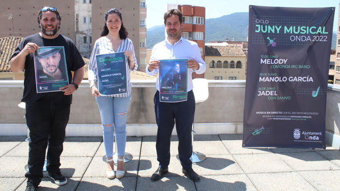 El recinto multiusos de la ciudad acogerá al aire libre estas tres actuaciones. La primera tendrá lugar el 12 de junio a cargo de la artista Melody, quien estará acompañada musicalmente por la Onda Big Band. El 18 de junio los ondenses y visitantes podrán disfrutar del concierto del famoso cantautor Manolo García. El broche de oro a ‘Juny Musical’ llegará de la mano del cantante Jadel junto a la Sociedad Artístico Musical Vila d’Onda (SAMVO) el 25 de junio.