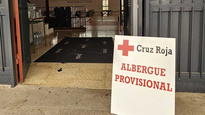 La presidenta de la Cruz Roja Onda, Merche Igualada, explica que cinco voluntarios de su asociación atienden a los evacuados en todo momento, haciendo turnos de doce horas. Además Cruz Roja les provee de comida y recursos materiales como camastros, mantas, medicinas e incluso hasta ropa, si fuese necesario. Además, confirma que tienen capacidad para acoger hasta 100 personas.