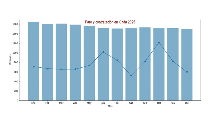 Onda cerró el año 2025 con un mercado laboral estable pero inicia el 2026 con una subida hasta situarlo a la cabeza del ‘ranking’ provincial de desempleo entre la poblaciones de entre 10.000 y 40.000 habitantes, según los datos de datosmacro.com. El municipio concluyó diciembre con 1.499 personas inscritas en el paro, prácticamente el m