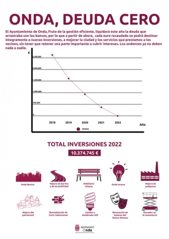 Ballester liquida la deuda del Ayuntamiento de Onda e incorpora 2,8 millones de euros para nuevas inversiones