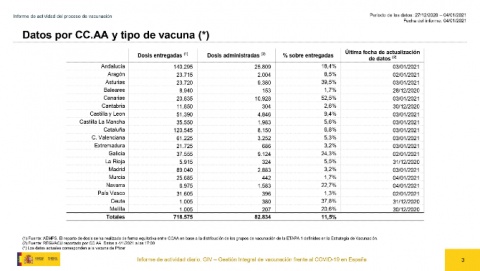 Un informe del Ministerio de Sanidad desglosa por comunidades el porcentaje de vacunas administradas.