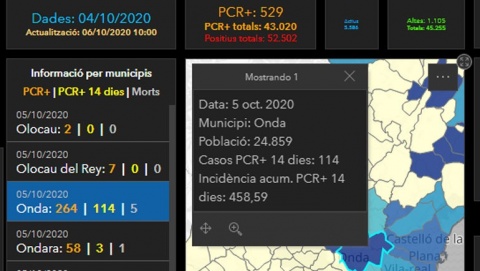 Onda registra los peores datos del departamento de salud en incidencia del coronavirus en los últimos 14 días
